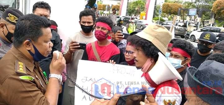 SBB, LENSANUSANTARA.CO.ID – Peserta aksi yang tergabung dalam Lembaga Swadaya Masyarakat (LSM) Pemuda Mandiri Peduli Rakyat Indonesi (PMPRI) Provinsi Maluku melakukan demonstrasi di depan Kantor Kejaksaan Tinggi Maluku, Senin 2/11/2020.