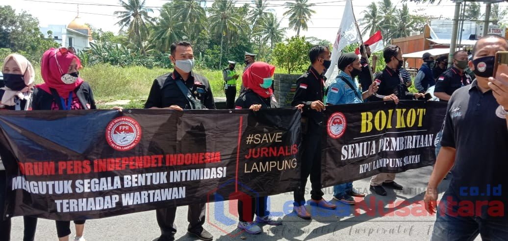 Hal inilah yang membuat para Wartawan Lampung Selatan dan Forum Pers Independent Indonesia (FPII) Korwil Lampung Selatan yang didukung FPII Korwil Kota Metro, Pesisir Barat, Lampung Utara, Tanggamus, Tulang Bawang, serta Jajaran Pengurus FPII Provinsi Lampung mengadakan aksi damai didepan Kantor KPU Kabupaten Lampung Selatan, Jalan Raden Inten, Rabu (04/11/2020).