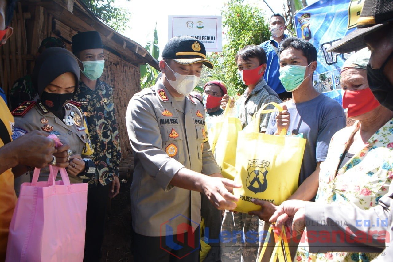 Situbondo,Lensanusantara.co.id – Kapolres Situbondo AKBP Ach. Imam Rifai, S.H., S.I.K., M.PICT., M.ISS. memberikan bantuan sembako kepada warga korban longsor di desa Baderan kec. Sumbermalang Situbondo, Kamis (5/11/2020)