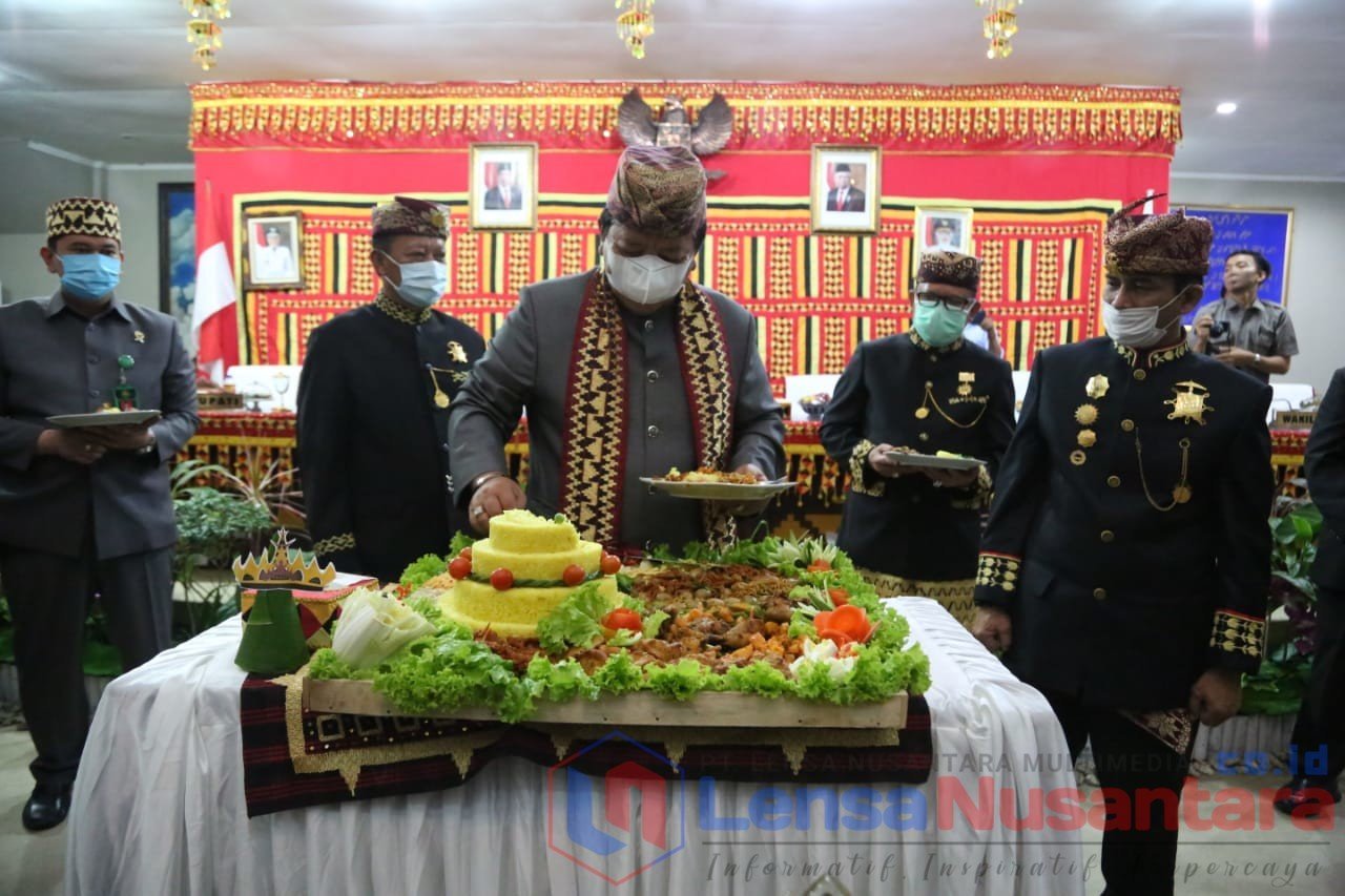 Acara Rapat Paripurna HUT ke-64 Kabupaten Lampung Selatan ditutup dengan pemotongan nasi tumpeng sebagai wujud syukur HUT ke-64 Kabupaten Lampung Selatan. (Man)
