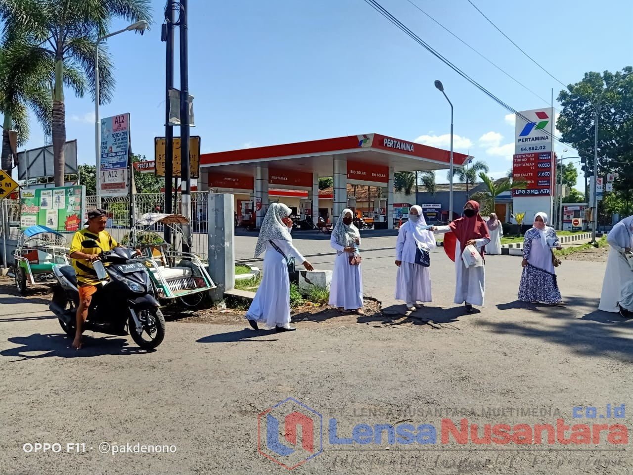 Bersama-sama pengurus dan anggota PC IGRA Kecamatan Grujugan membagikan masker kepada pengguna jalan, pedagang serta warga yang akan mengisi bahan bakar di SPBU Tenggarang Bondowoso.