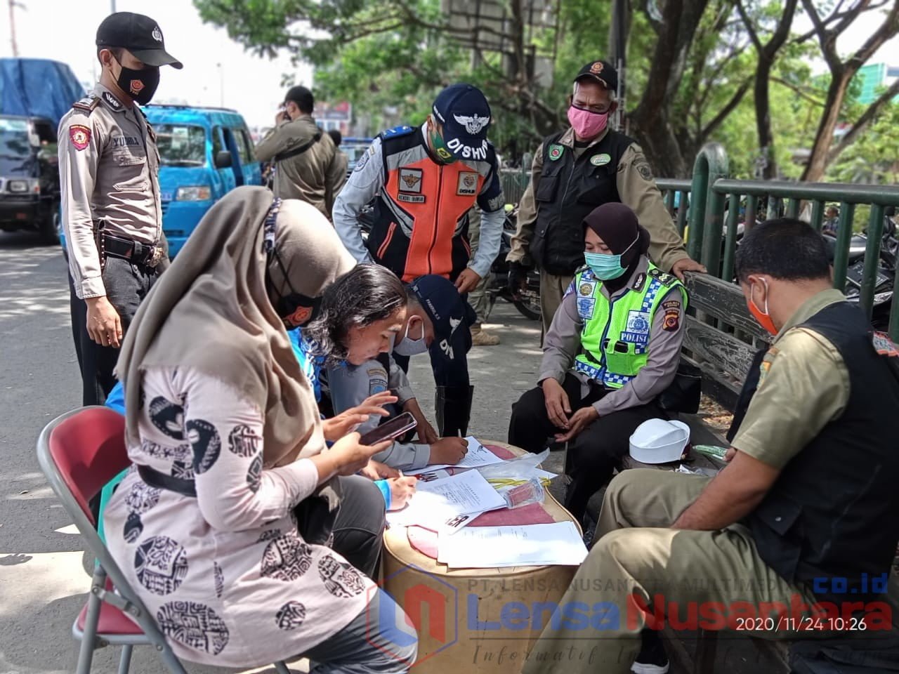 Bogor, LENSANUSANTARA.CO.ID – Kamis 26/11/2020, Polsek Cibinong bersama dengan Koramil, Satpol PP, Dishub dan Instansi lain melaksanakan Ops Yustisi Stasioner dan Mobile.