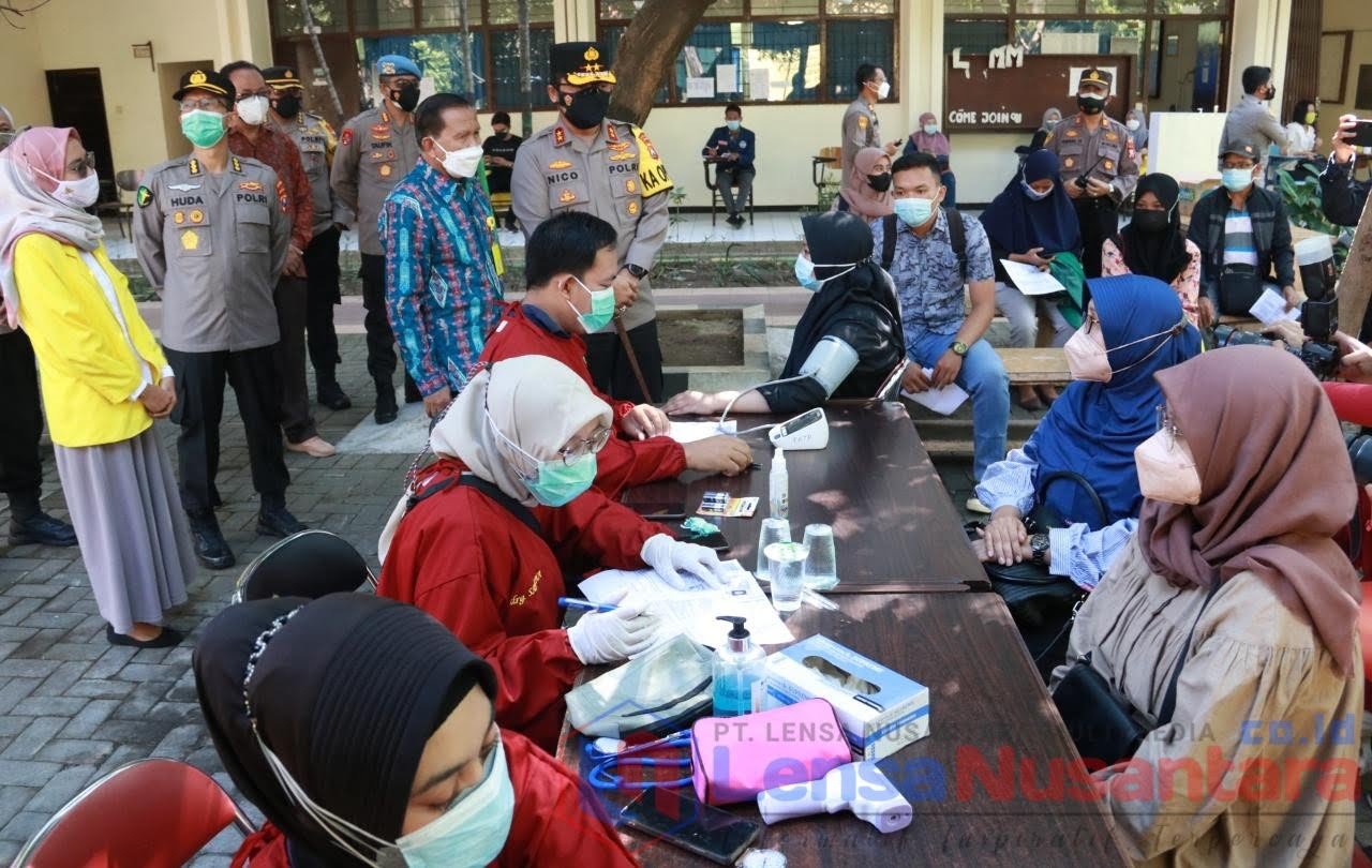 Surabaya, LENSANUSANTARA.CO.ID – Kapolda Jawa Timur Irjen Pol Nico Afinta bersama Pejabat Utama Polda Jatim melakukan pengecekan serbuan vaksinasi di Universitas Bhayangkara (Ubhara) Surabaya, Kamis (29/7/2021).