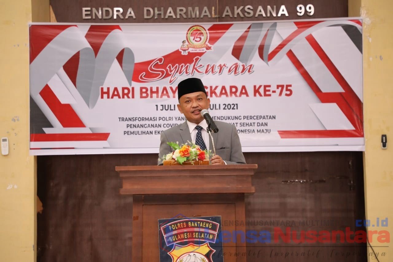 Sebagai salah satu rangkaian HUT Bhayangkara ke-75, dilaksanakan pula acara Syukuran yang dilangsungkan di Aula Endra Dharmalaksana 99 Polres Bantaeng, dimana pada kesempatan itu, Bupati Bantaeng mengucapkan selamat kepada seluruh Bhayangkara. Dikatakannya bahwa hari ini tidak hanya menjadi kebahagiaan keluarga besar Polri tetapi juga kebahagaiaan bagi seluruh masyarakat di Kab. Bantaeng.
