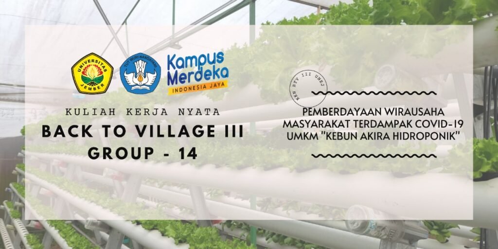 Di Kabupaten Bondowoso, Kelurahan Kotakulon tepatnya ada UMKM Kebun Akira Hidroponik, salah satu UMKM yang terkena dampak dari pandemi ini, yaitu mengalami penurunan tingkat penjualan sayuran hidroponi dan banyaknya sayur yang terbuang karena tidak laku. Hal ini yang menyebabkan saya melakukan pelatihan pentingnya media online dalam berwirausaha.