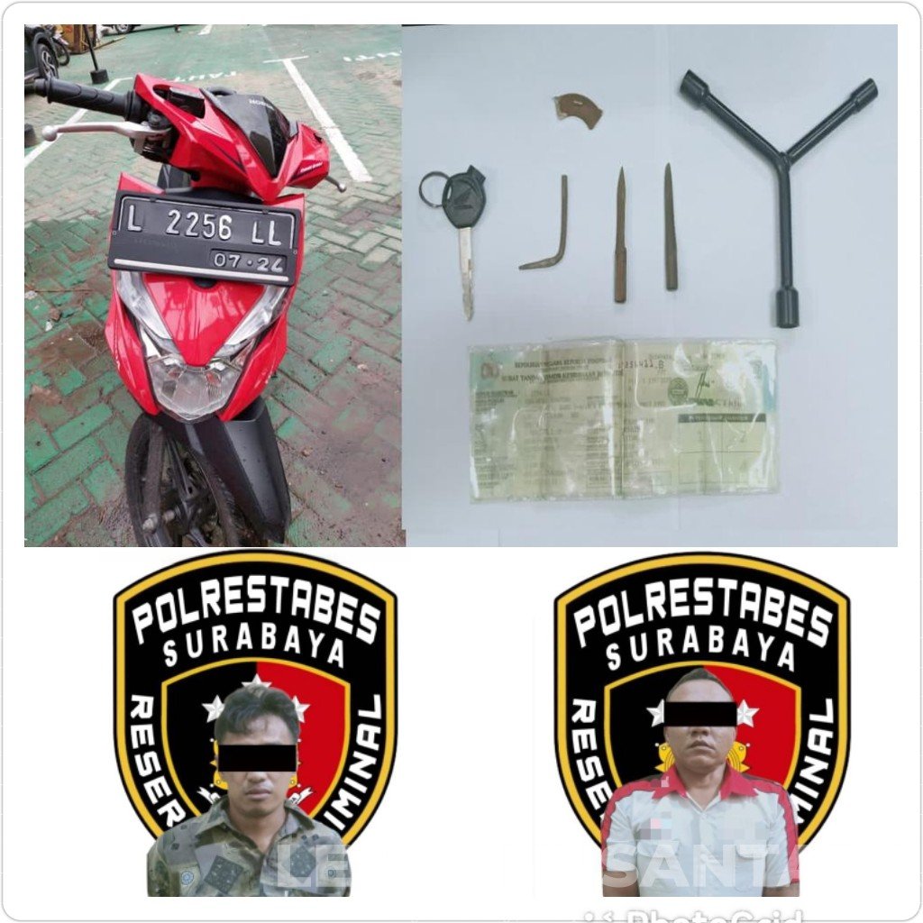 Surabaya, LENSANUSANTARA.CO.ID – Dua pelaku pencurian kendaran bermotor (Curanmor) yang kerap beraksi di Surabaya kembali diamakan oleh Tim Resmob Polrestabes Surabaya. Pada Jumat 12 November 2021 pukul 01.00 WIB.