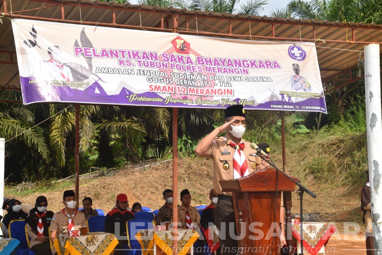 Merangin, LENSANUSANTARA.CO.ID – Jum’at (12/11/2021) Kapolres Merangin AKBP Irwan Andy Purnamawan,S.I.K memimpin Acara pelantikan Saka Bhayangkara Ks. Tubun di Embung Rt. 17 Desa Pinang Merah Kec. Pamenang Barat Kab. Merangin pukul 14.00 Wib.