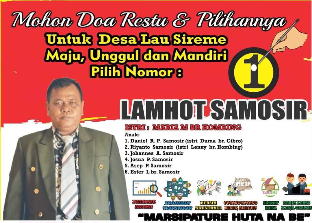 Rasa percaya diri Lamhot Samosir semakin bertambah setelah mendapatkan nomor urut 1 (satu). Niatnya yang kuat ingin merubah wajah Desa Lau Sireme membuatnya maju sebagai calon kepala desa dengan membawa Visi ; ” Mewujudkan Desa Lau Sireme yang Maju, Unggul dan Mandiri.”