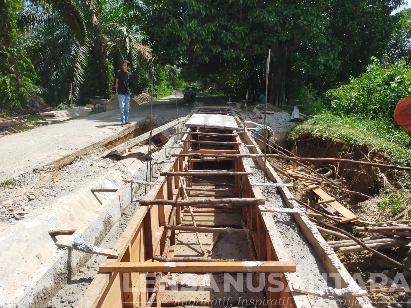 Masih terlihat , selain itu besi sayap (besi U) irigasi yang lama dengan yang baru di bangun terlihat sepertinya diduga tidak disatukan renggang berkisar 15 cm di duga langsung di cor sepertinya lagi dikerjakan asal-asalan. (Dsl)
