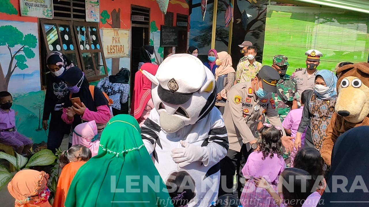 Probolinggo, LENSANUSANTARA.CO.ID – Kepolisian Resor Probolinggo melalui Polsek Dringu libatkan dua orang anggotanya untuk menjadi badut di lokasi vaksinasi merdeka anak. Hal itu dilakukan, untuk menghibur siswa taman kanak-kanak (TK) yang divaksin dosis pertama.