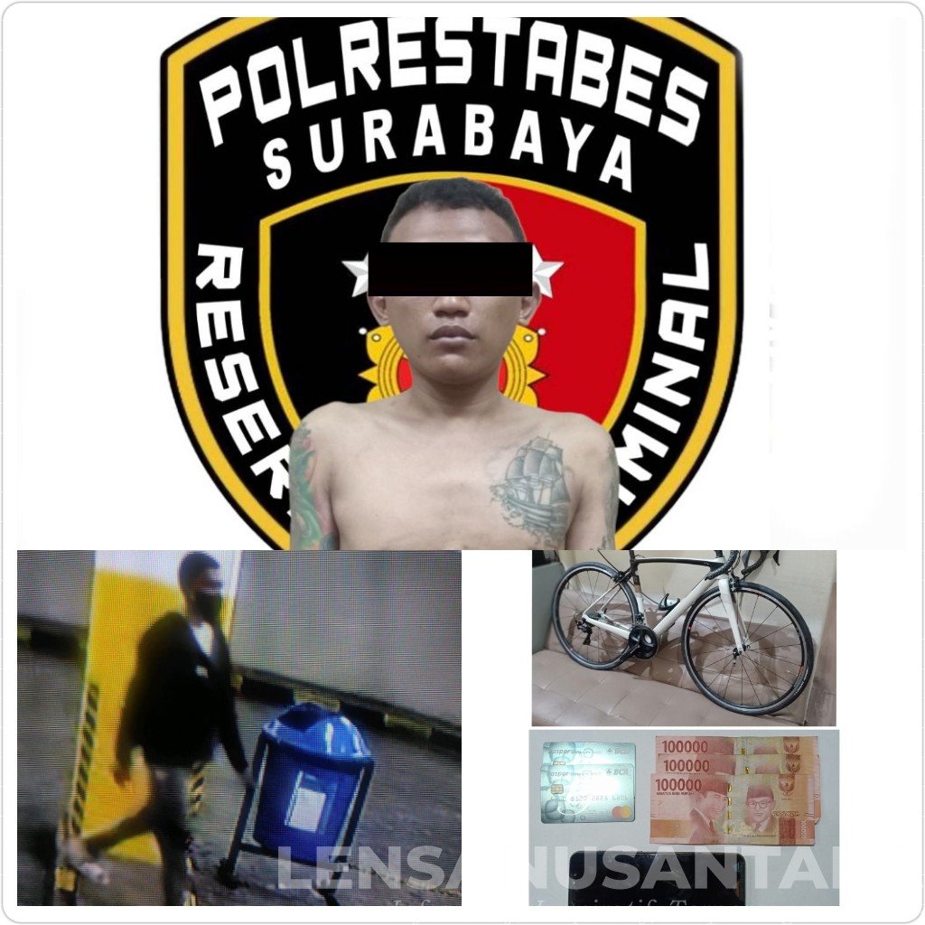 “Berbekal keterangan saksi dan rekaman CCTV yang ada dilokasi akhirnya anggota yang sebelumnya mendapatkan info serta ciri cirinya. Petugas langusng bergerak cepat dan mengamankannnya di Jalan Ir. Soekarno Surabaya,” terang dia.
