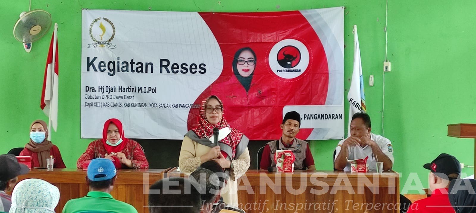 Pangandaran, LENSANUSANTARA.CO.ID – Acara Reses yang dilaksanakan oleh Ijah Hartini yang menjabat sebagai Anggota Dewan Provinsi Jawa Barat Komisi IV Dapil XIII yang meliputi Kab. Kuningan, Kab. Ciamis, Kota Banjar, Kab. Pangnadaran di Balai Desa Ciganjeng Kec. Padaherang Kab. Pangandaran.