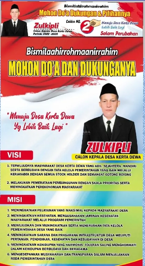 Lanjutnya, juga saya berharap kepada sanak Famili dan handaytaulan yang ada di Desa Kerta Dewa sekiranya sudilah Mendukung dan Mendoakan, saya juga Mohon doa Restunya Kepada Masyarakat agar Menentukan Pilihannya yang terbaik,saya juga Menyadari saya bukan siapa-siapa namun saya tak akan bisa maju tanpa bantuan keluarga yang ada, Semoga Allah Merestui dan Mengabulkan niat baik saya,”Katanya
