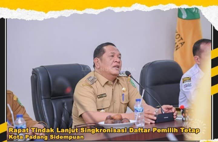 Padang Sidempuan, LENSANUSANTARA.CO.ID – Menindaklanjuti pertemuan Walikota Padang Sidempuan dengan Ketua KPU Kota Padang Sidempuan pada hari Kamis 15 September 2022 yang lalu, Pemko Padang Sidempuan kembali mengadakan rapat lanjutan terhadap sinkronisasi daftar pemilih tetap (DPT) Kota Padang Sidempuan, Senin (19/9).