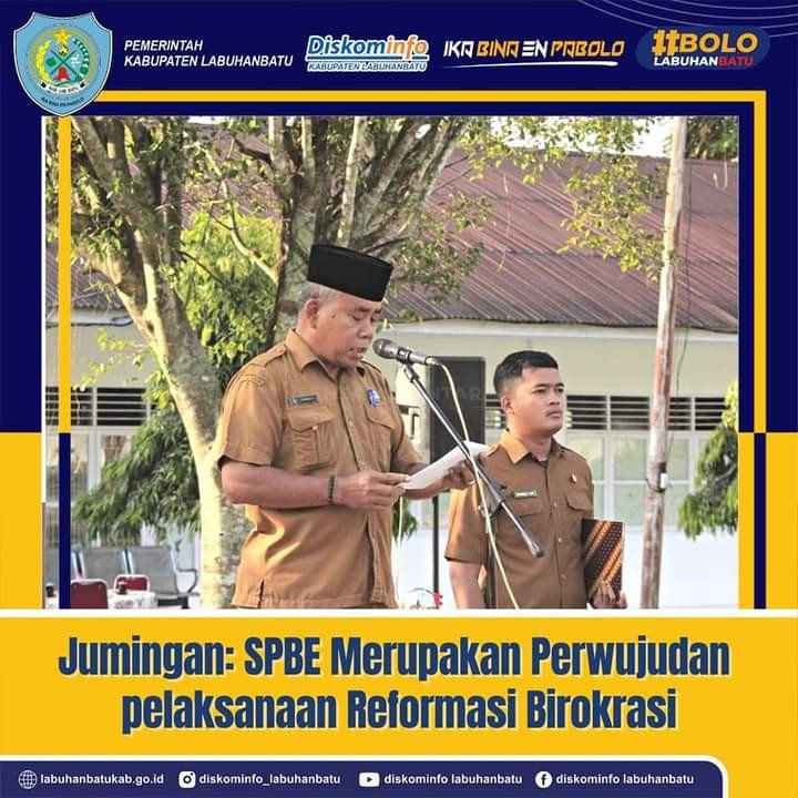 Labuhanbatu, LENSANUSANTARA.CO.ID – Sistem Pemerintahan Berbasis Elektronik (SPBE) sebagaimana diamanatkan dalam Peraturan Presiden Nomor 95 Tahun 2018 pasal 2, menyatakan bahwa penyelenggaraan pemerintah yang memanfaatkan teknologi informasi dan komunikasi dimaksudkan untuk memberikan layanan kepada pengguna dengan prinsip efektifitas, keterpaduan, kesinambungan, efisiensi, akuntabilitas interoperabilitas dan keamanan. Hal tersebut disampaikan Staf Ahli Bupati Labuhanbatu Ir. Jumingan dalam arahannya pada Apel Gabungan Pegawai di lingkungan Pemerintah Kabupaten Labuhanbatu, Senin (6/3/2023).