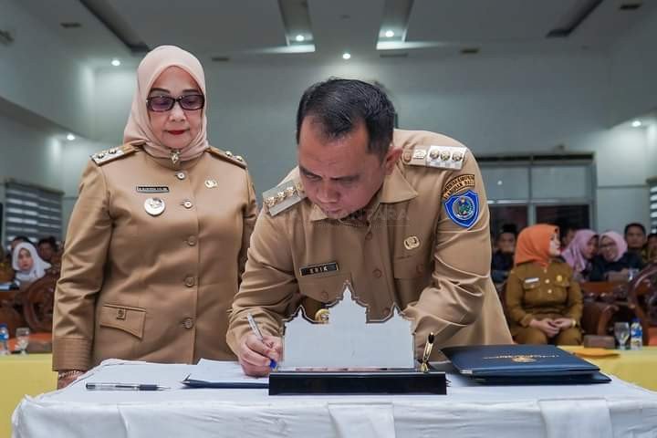 Hal tersebut disampaikan Bupati Labuhanbatu dr. H. Erik Adtrada Ritonga, MKM, didampingi Wakil Bupati Labuhanbatu Hj. Elya Rosa Siregar, S.Pd, MM, saat menandatangani Nota Kesepakatan dan Penguatan Evaluasi Kabupaten Labuhanbatu Layak Anak (KLA) Tahun 2023, di Ruang Data dan Karya Kantor Bupati. Kamis (7/3).
