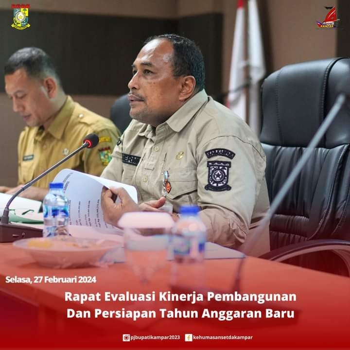 Bangkinang, LENSANUSANTARA.CO.ID – Dalam upaya meningkatkan efektivitas dan efisiensi pembangunan di Kabupaten Kampar, Pj Bupati Kampar Hambali SE.,MH yang pada kesempatan kali ini diwakili oleh Asisten II Bidang pembangunan dan perekonomian setda Kampar Suhermi ST memimpin rapat evaluasi untuk meninjau realisasi fisik dan keuangan kegiatan pembangunan tahun anggaran 2023. Selasa 27/02/2024.