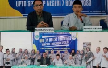 Bondowoso, LENSANUSANTARA.CO.ID -Pada Senin (2/9/2024 tanggal) SMPN 2 Tamanan Bondowoso menggelar kegiatan In-House Training (IHT) dengan tema “Mencipta Lingkungan Sekolah Kaya Numerasi.” Kegiatan ini bertujuan untuk meningkatkan kemampuan numerasi di kalangan guru dan siswa serta menciptakan lingkungan belajar yang lebih kaya dengan budaya numerasi.