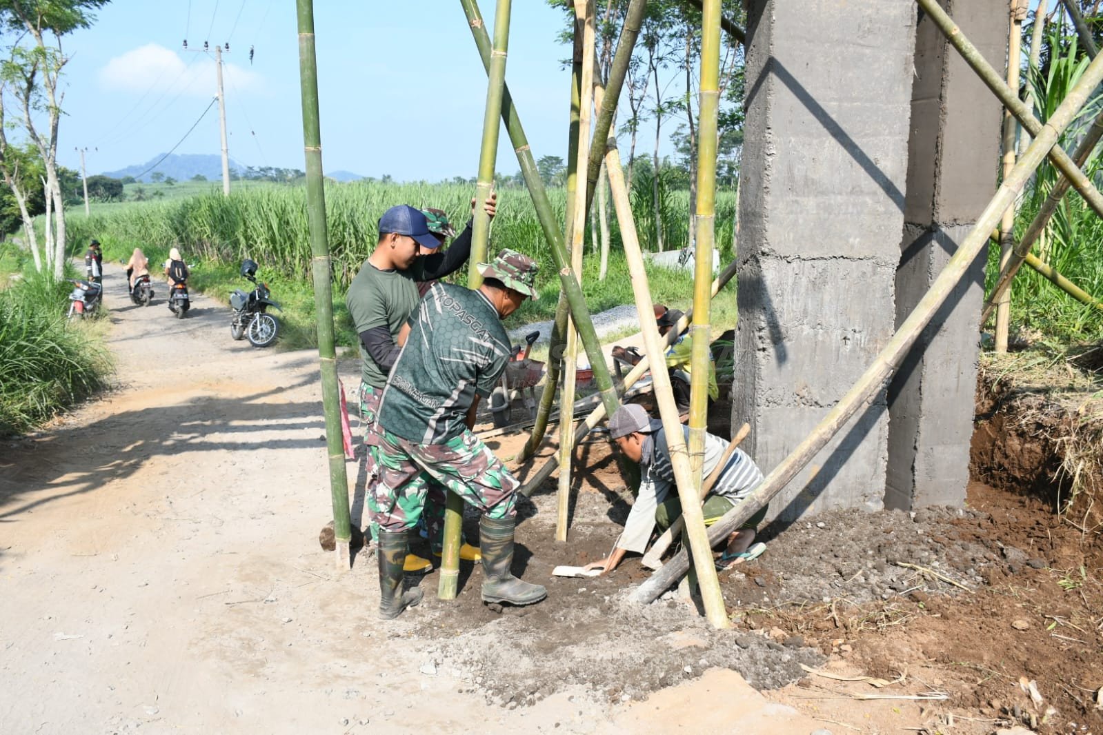 Dipimpin oleh Letda Lado dari Angkatan Laut dan Babinsa Kopka Lukman dari Kodim 0822 Bondowoso, para personel Satgas TMMD bersama warga bahu-membahu dalam proses pembangunan. Dengan semangat gotong royong, mereka memastikan bahwa setiap detail pengerjaan dilakukan dengan standar terbaik agar gapura ini bisa berdiri kokoh dan tahan lama.