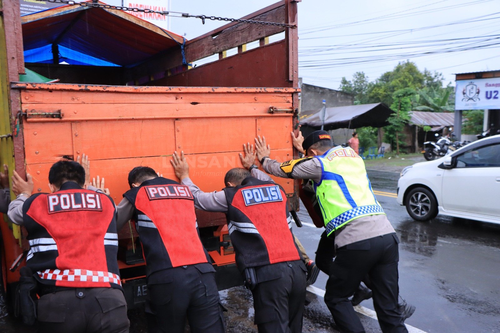 Di tengah pengaturan lalu lintas, Kapolres menunjukkan kepeduliannya dengan turun langsung membantu mendorong sebuah truk yang mogok. Aksi tersebut mendapat apresiasi dari masyarakat, terutama para pemudik.