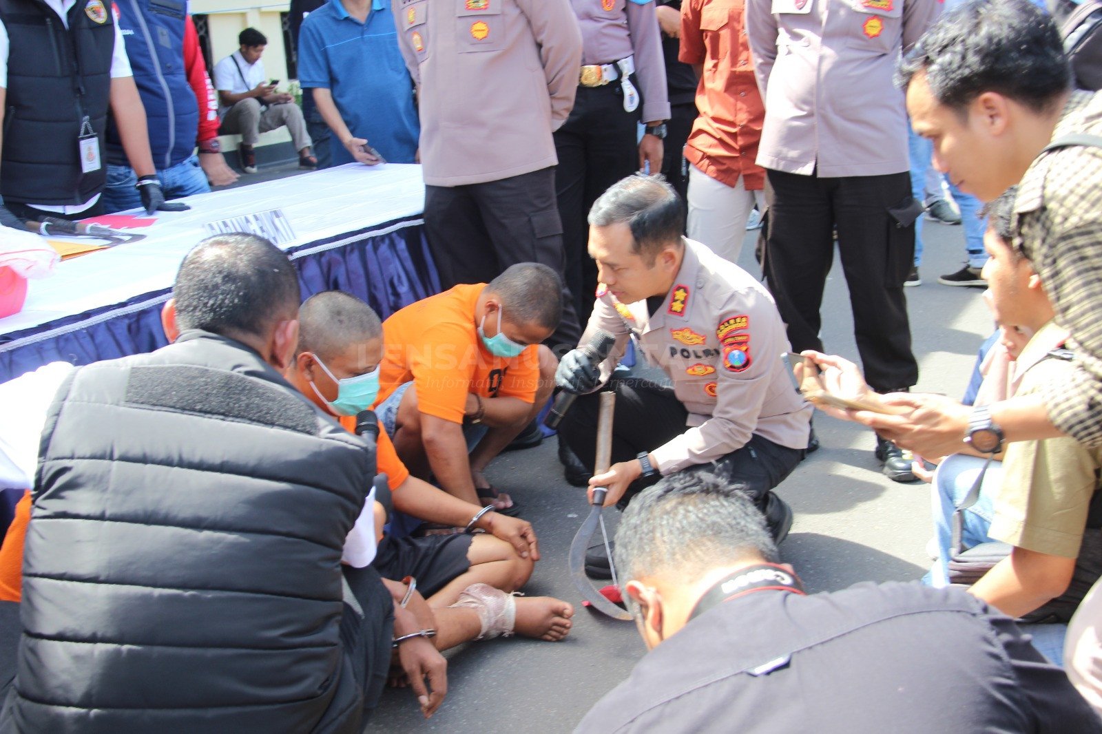 Dalam press release tersebut, Kapolres juga menunjukkan barang bukti yang berhasil diamankan dari para pelaku, antara lain tiga karung daun tembakau hasil curian, pakaian pelaku yang terdapat bercak darah, tali yang digunakan untuk mengikat korban, serta tiga bilah celurit yang menjadi alat kejahatan.