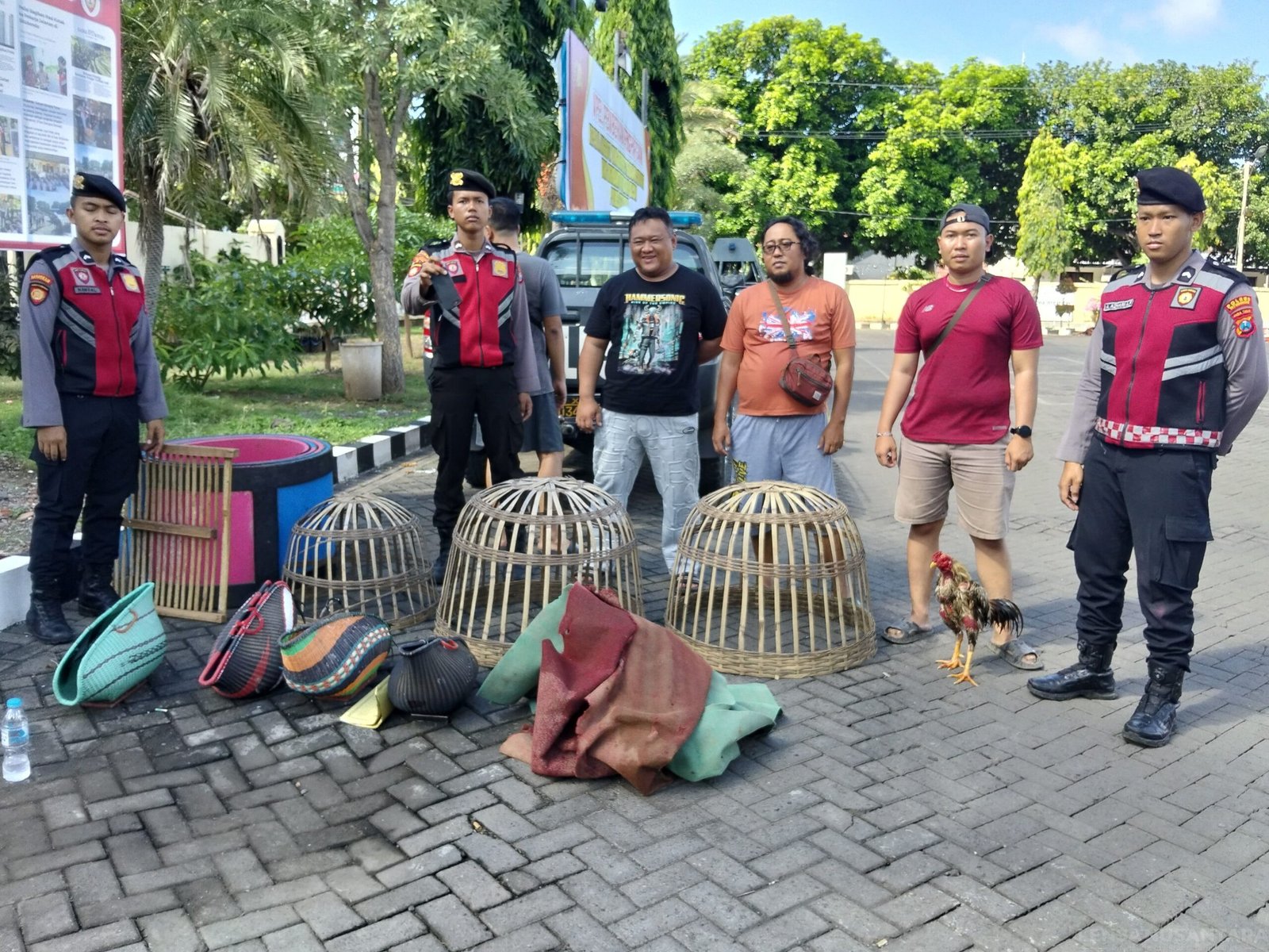 Meski tidak berhasil menangkap pelaku, petugas berhasil mengamankan sejumlah barang bukti, antara lain tiga ekor ayam aduan, empat tempat ayam, satu buah galangan, satu buah karpet, tiga buah kurungan dan satu unit handphone.