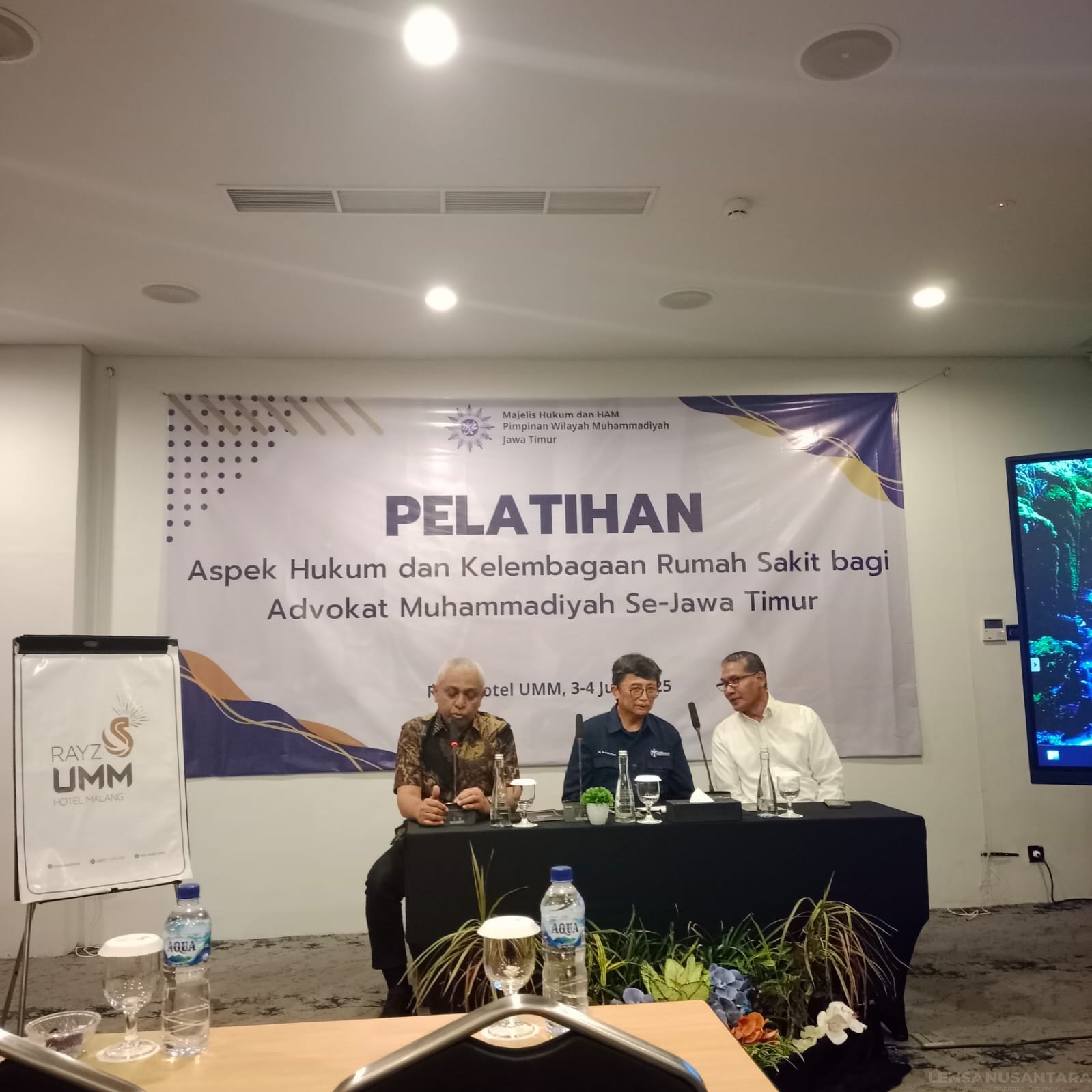 Pelatihan bagi advokat Muhammadiyah se Jawa Timur itu berlangsung di Rays Hotel UMM, Malang, Selasa-Rabu, 2-3 Juni 2025. Membahas aspek hukum dan kelembagaan rumah sakit.