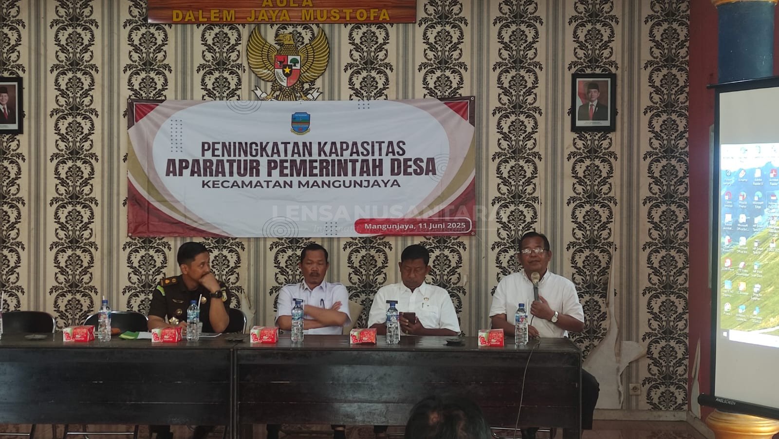 Peningkatan kapasitas tersebut dihadiri oleh, Kadinsos PMD Pangandaran, Kejari Ciamis, Polres Pangandaran, Kodim 0625, Camat Kecamatan Mangunjaya, ketua Apdesi Mangunjaya, seluruh kepalan desa dan para perangkat Desa se-Kecamatan Mangunjaya.