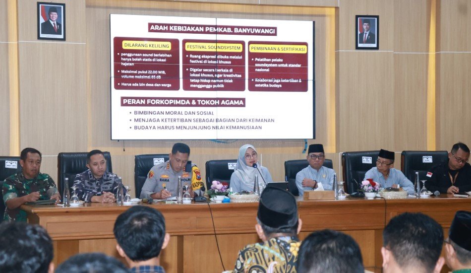 Banyuwangi, LENSANUSANTARA.CO.ID – Forum Komunikasi Pimpinan Daerah (Forkopimda) Banyuwangi menggelar rapat koordinasi dengan sejumlah elemen di Kantor Pemkab Banyuwangi, Jumat (25/7/2025). Pertemuan tersebut menghasilkan Kesepakatan Bersama guna mengatur pelaksanaan karnaval agustusan dan sound horeg.