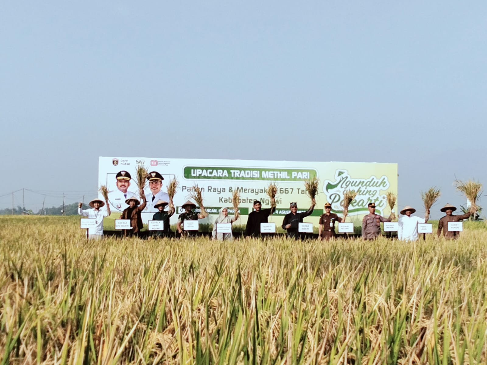 Kegiatan ini mengusung tema “Ngunduh Wahing Pakarti”, memperkuat nilai gotong royong dan keharmonisan petani sebagai jati diri Ngawi, lumbung pangan nasional.