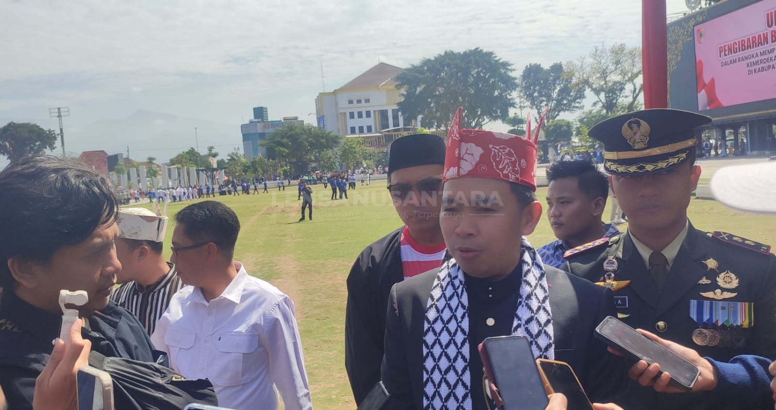 Jember, LENSANUSANTARA.CO.ID – Pimpin upacara peringatan HUT Kemerdekaan RI ke-80, digelar di alun alun Jember pada Minggu (17/8/2025), dengan Bupati Jember Muhammad Fawait sebagai Inspektur Upacara, ada penampakan yang berbeda dari Syal yang dipakai Bupati Jember.
