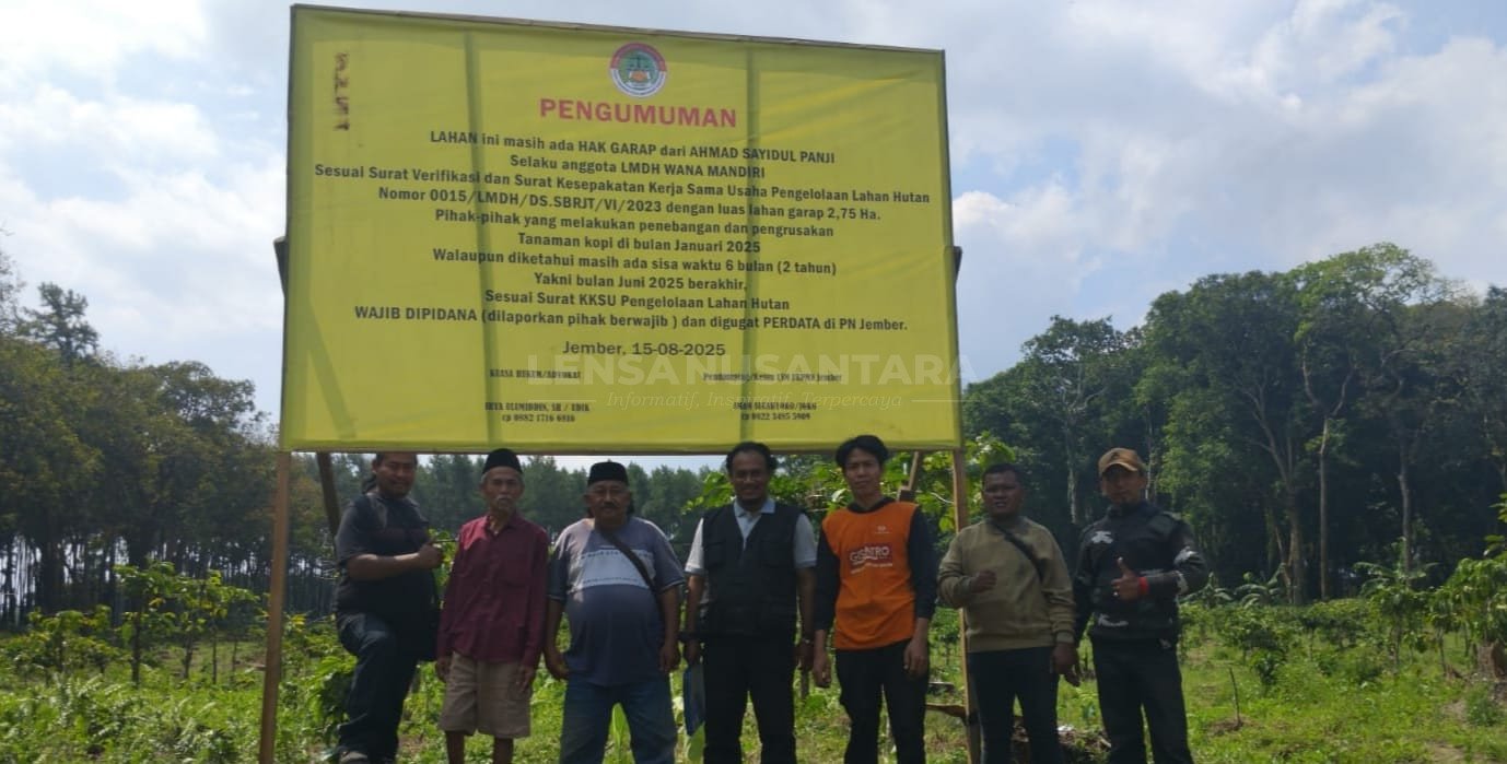 Jember, LENSANUSANTARA.CO.ID – Nasib Prihatin dialami Ahmad Sayidul Panji, Lahan Garap kebun kopi miliknya selaku anggota LMDH Wana Mandiri yang beralamat di Dusun Sepuran Desa Sumberjati Kecamatan Silo Kabupaten Jember. Seluas 2,75 Ha yang sejatinya selesai masa Garap di bulan Juni 2025 (panen kopi), namun ditebang habis bulan Januari 2025 oleh oknum Pengurus dan oknum Perhutani, Selasa (19/8/2025).