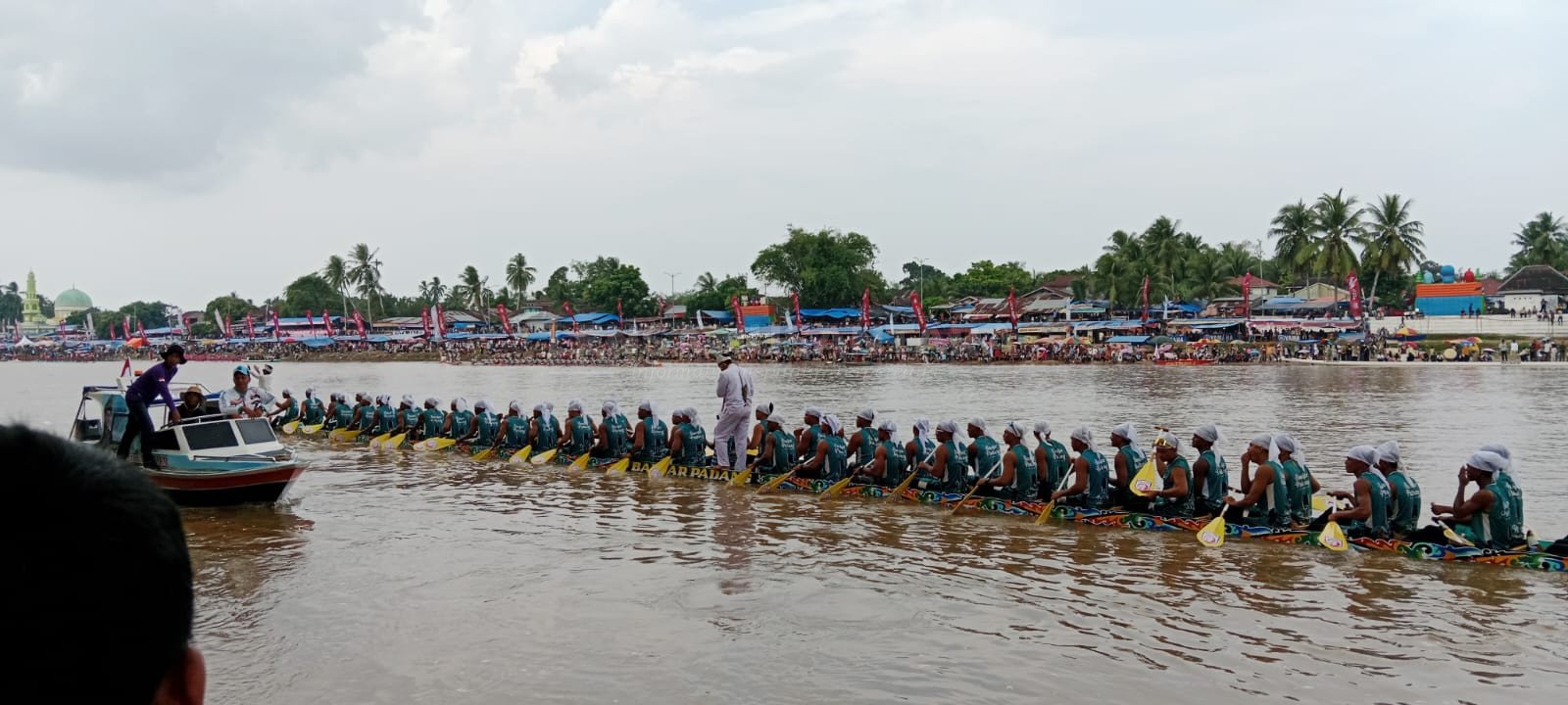 Kuansing, LENSANUSANTARA.CO.ID – Festival pacu jalur tradisional di Tepian Narosa Telukkuantan pada hari keempat, Sabtu 23 Agustus 2025 terjadi banyak kejutan. Putri Anggun Sibiran Tulang dari Banjar Padang Kuantan Mudik, Kuantan Singingi (Kuansing) juara bertahan, harus tumbang di atas haluan jalur pendatang baru dari Desa Petalongan Indragiri Hulu (Inhu), Tuah Datuak Keramat Imbang Dialam.