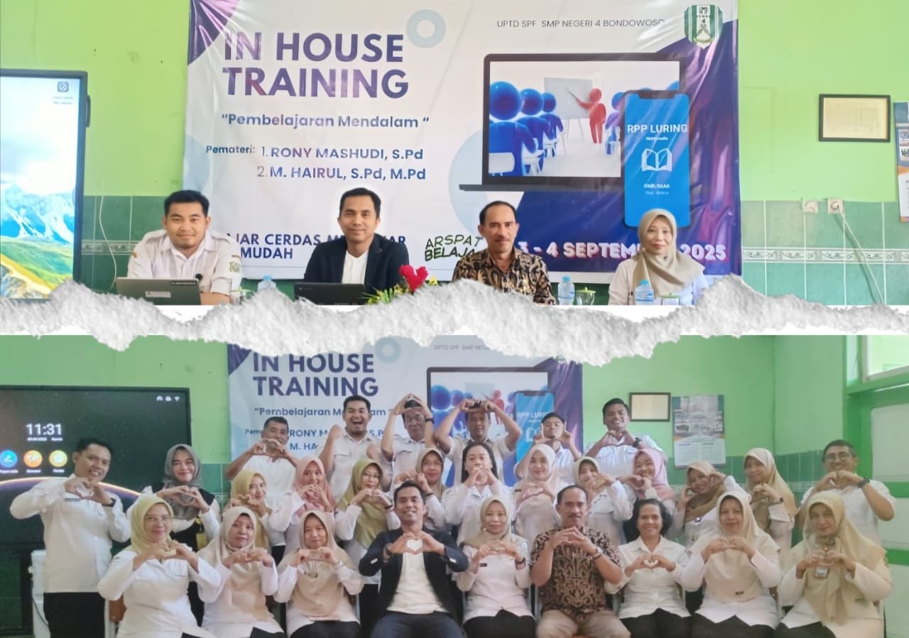 Bondowoso, LENSANUSANTARA.CO.ID – Dalam upaya meningkatkan kompetensi guru dan mendorong transformasi pendidikan, SMP Negeri 4 Bondowoso menggelar In House Training (IHT) Pembelajaran Mendalam.