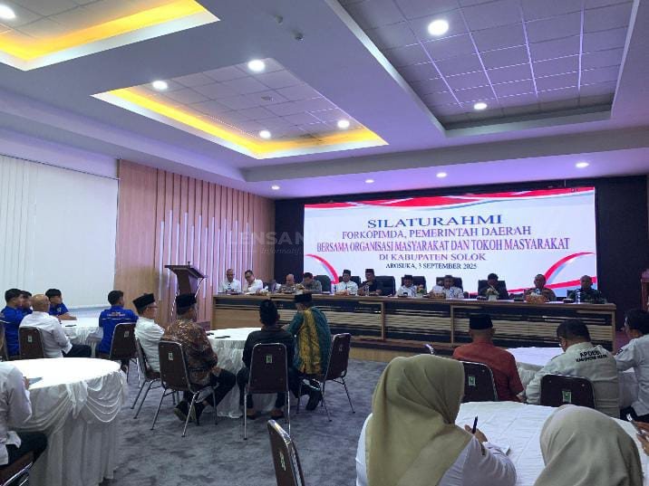 Solok, LENSANUSANTARA.CO.ID – Pemerintah Kabupaten Solok bersama Forum Koordinasi Pimpinan Daerah (Forkopimda), Organisasi Masyarakat (ormas), dan tokoh masyarakat menggelar kegiatan silaturahmi di aula pertemuan Setda Kabupaten Solok, Rabu (03/09/2025).