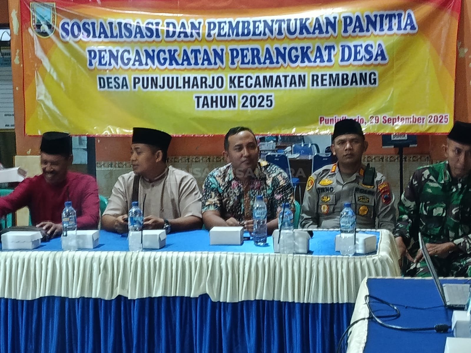 Rembang, LENSANUSANTARA.CO.ID – Sebagai upaya mewujudkan tata kelola pemerintahan desa yang profesional dan akuntabel, Pemerintah Desa Punjulharjo Rembang melaksanakan kegiatan Sosialisasi dan Pembentukan Tim Pengangkatan Perangkat Desa Tahun 2025.