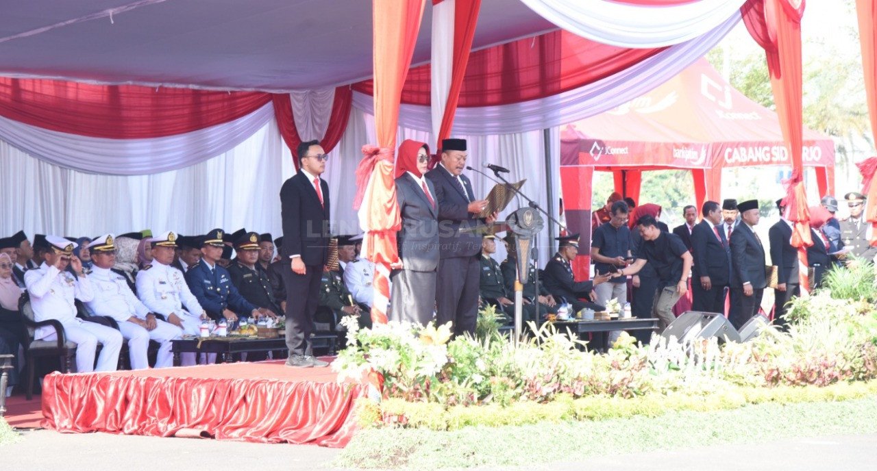 Upacara dipimpin oleh Sekretaris Daerah Kabupaten Sidoarjo, Fenny Apridawati. Barisan peserta terdiri dari unsur TNI dan Polri seperti Kodim 0816, Puspenerbal, Pasmar 2, Lanud Muljono, dan Polresta Sidoarjo. Sejumlah instansi daerah juga ambil bagian, antara lain Satpol PP, Bakesbangpol, serta Dinas Perhubungan Sidoarjo.