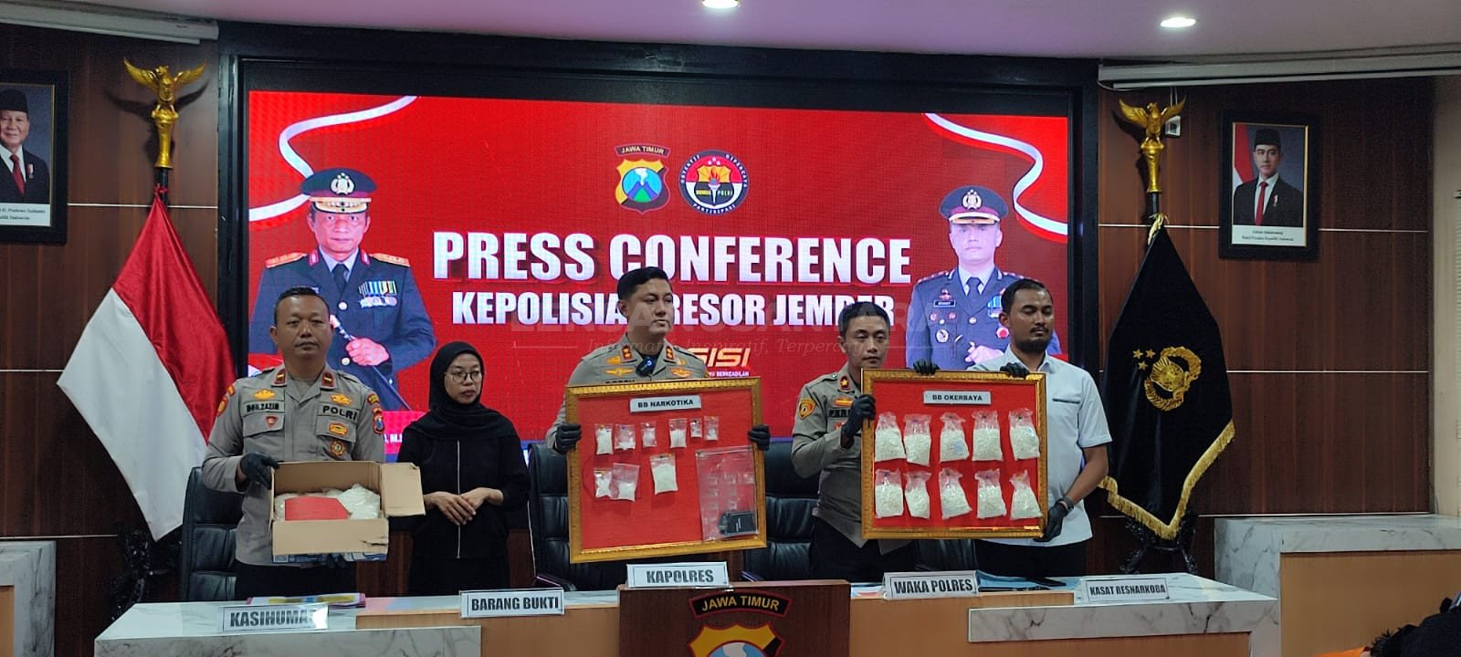 Kapolres Jember, AKBP Bobby A. Candroputra, menyampaikan bahwa dalam operasi tersebut pihaknya berhasil mengungkap terdiri dari 14 kasus narkotika dan kasus okerbaya, serta mengamankan 15 tersangka.