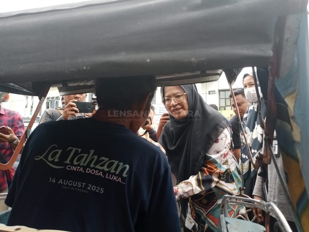 Bupati dr Amalia Desiana bagikan sembako ke tukang becak depan RSUD HJ Anna Lasmana, Jumat, 3/10/2025. Foto : (Gunawan/Lensa Nusantara).