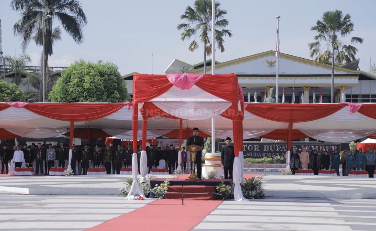 Dalam kesempatan tersebut, Sekdakab Jupriono membacakan sambutan Gubernur Jawa Timur, Khofifah Indar Parawansa, yang menegaskan semangat dan makna peringatan hari jadi ke-80 Provinsi Jawa Timur dengan tema “Jatim Tangguh, Terus Bertumbuh.”