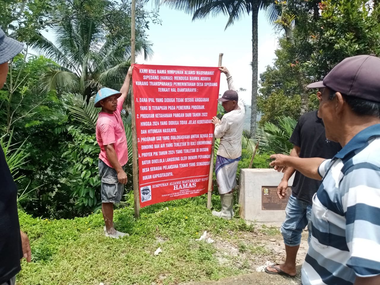 Beberapa warga Desa Sipedang memasang banner sebagai bentuk mengemukakan aspirasi, Rabu, 15/10/2025. Foto : (Gunawan/Lensa Nusantara).