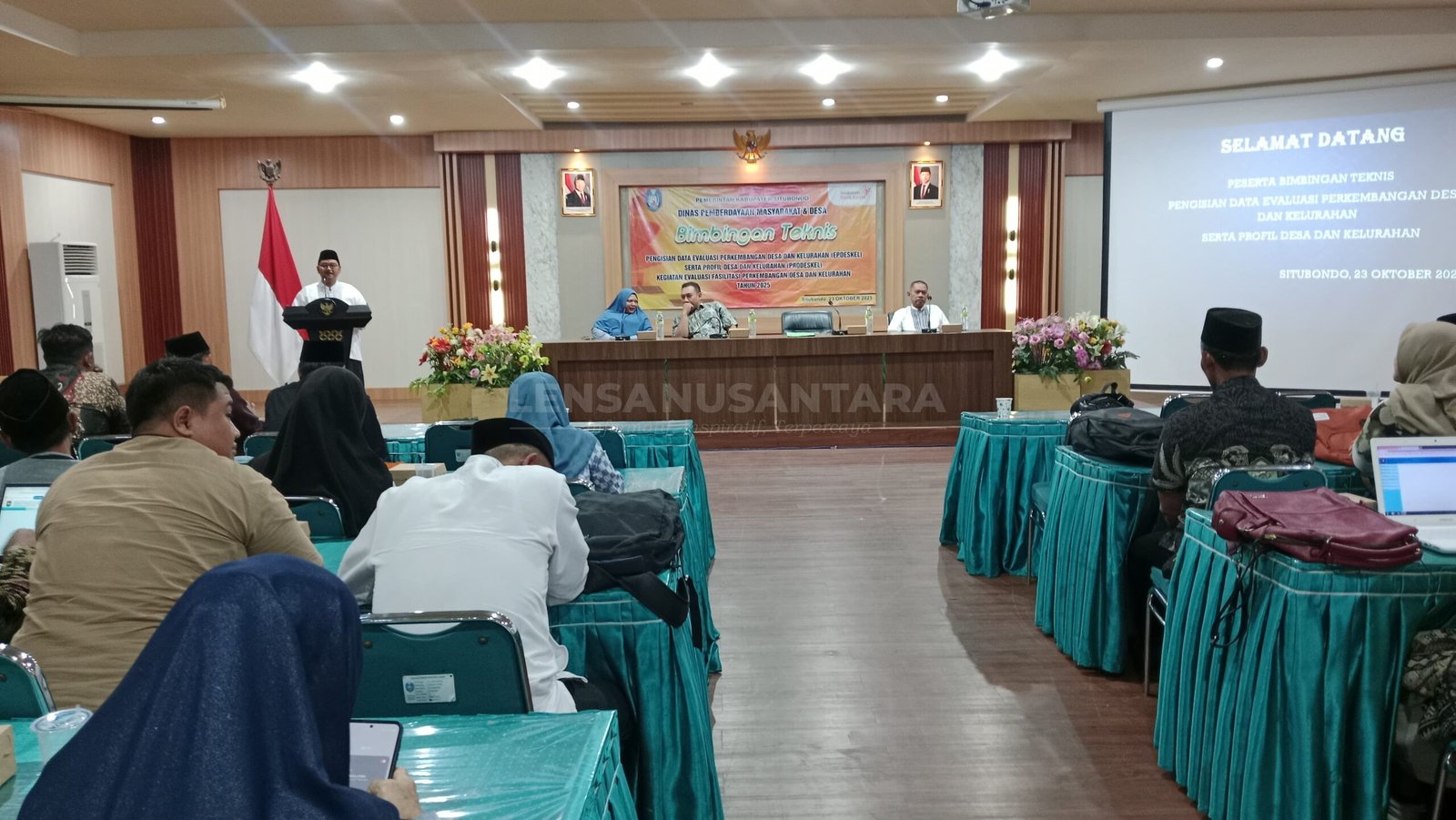 Situbondo, LENSANUSANTARA.CO.ID – Pemkab Situbondo melalui Dinas Pemberdayaan Masyarakat dan Desa (DPMD) setempat menggelar bimbingan teknis (Bimtek) pengisian data evaluasi perkembangan desa dan kelurahan (Epdeskel), serta profil desa dan kelurahan (Prodeskel) kegiatan evaluasi fasilitas perkembangan desa dan kelurahan, Kamis, 23 Oktober 2025.