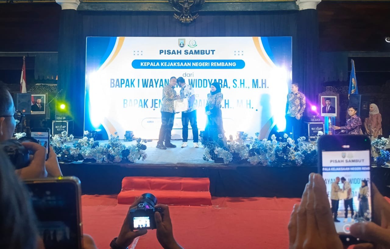 Bupati Rembang, Harno, menyampaikan apresiasi atas dedikasi I Wayan Eka Widdyara selama memimpin Kejari Rembang.