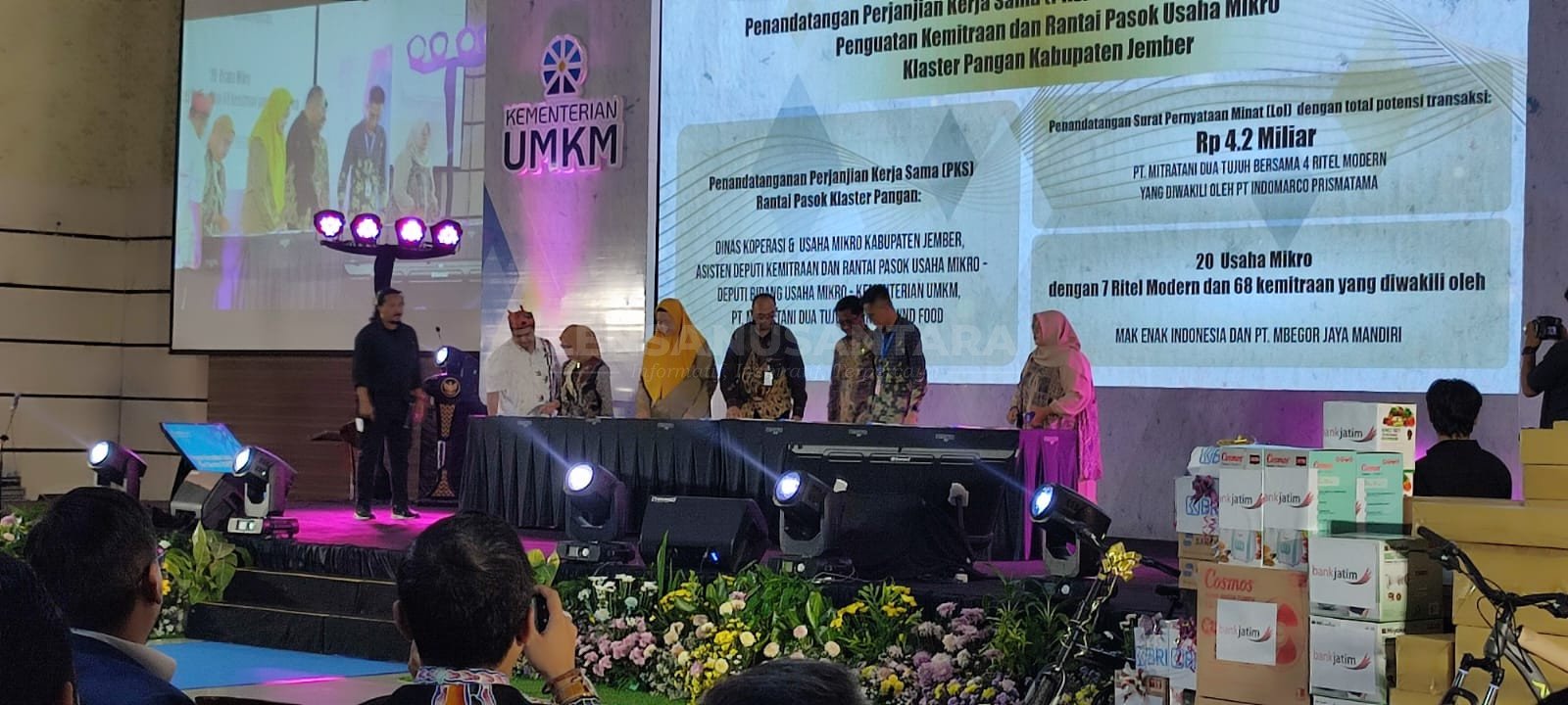“Pemprov Jatim mengucapkan terimakasih kepada pemerintah pusat Kementerian UMKM RI talah mendampingi UMKM Jawa Timur khususnya di kabupaten Jember nantinya di mitrakan untuk bisa masuk ritel modern,” jelasnya.
