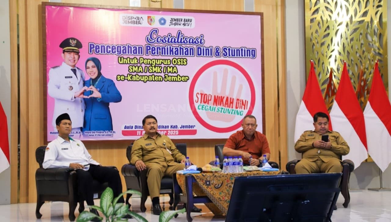 Jember, LENSANUSANTARA.CO.ID – Pemerintah Kabupaten Jember menggandeng ratusan pengurus OSIS SMA/SMK/MA se-Kabupaten Jember dalam upaya pencegahan pernikahan dini dan stunting. Langkah ini diambil sebagai bagian dari upaya serius untuk menciptakan Generasi Emas Jember yang sehat, cerdas, dan produktif di masa depan.