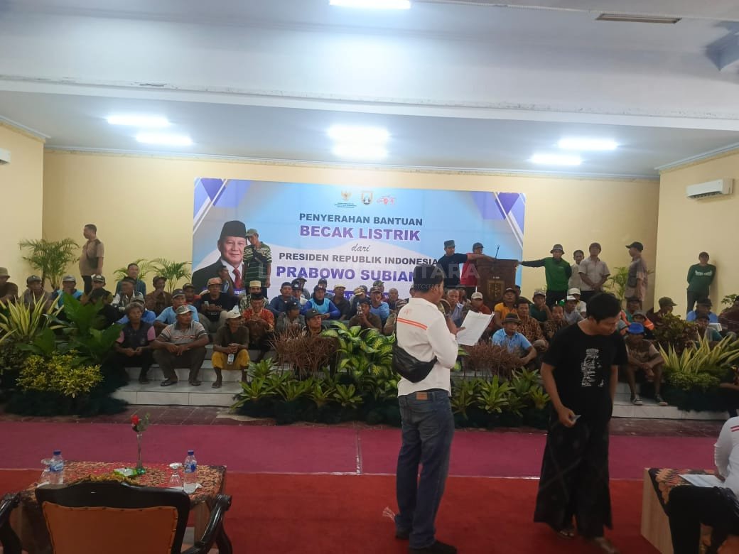 Sementara itu ditempat terpisah, Ketua DPRD Rembang Abdul Rouf menyampaikan rasa bahagia Kebupaten Rembang mendapatkan bantuan becak listrik. Terimakasih kepada bapak Presiden Prabowo Subianto atas bantuan becak listrik ini.
