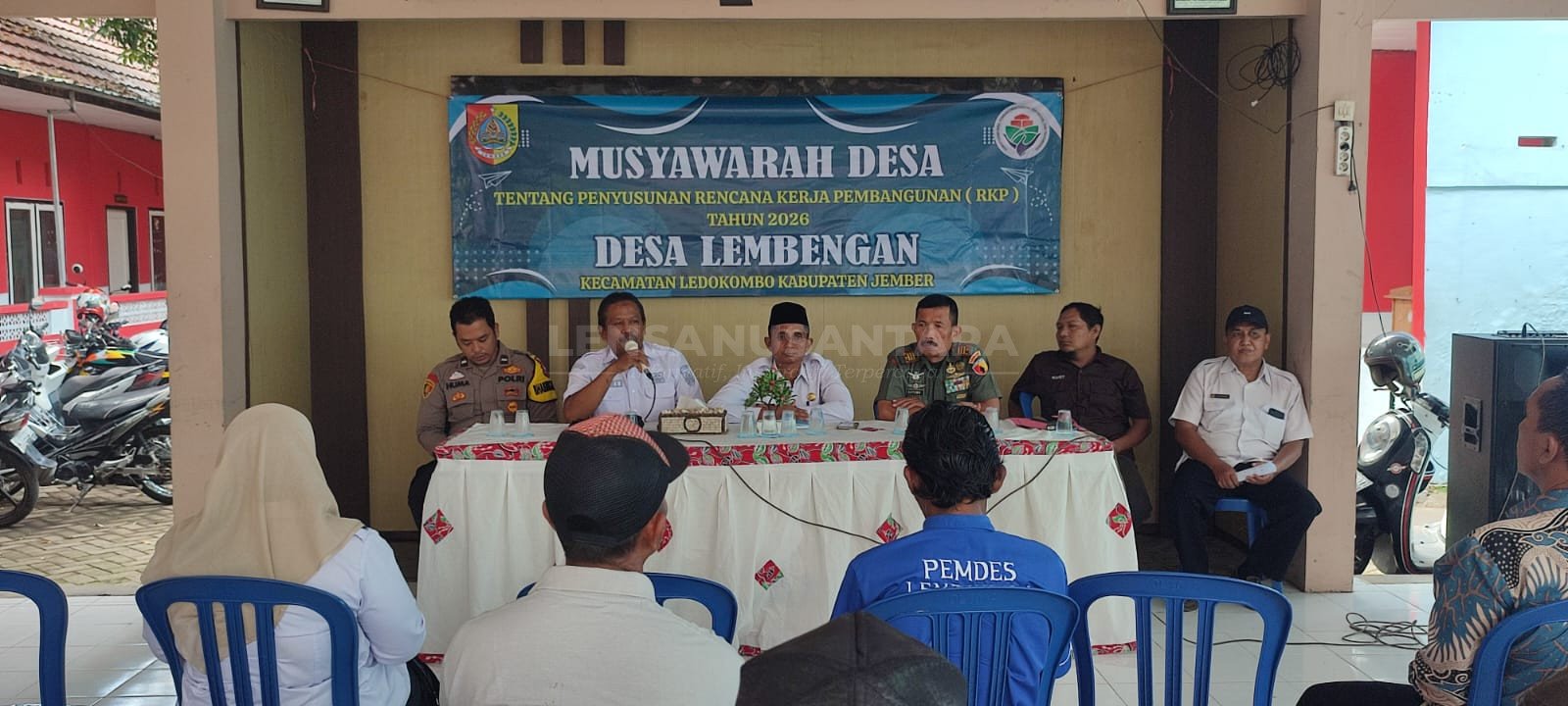 Jember, LENSANUSANTARA.CO.ID – Pemerintah Desa Lembengan, Kecamatan Lodokombo, Jember, menggelar Musyawarah Desa (Musdes) untuk menyusun Rencana Kerja Pemerintah Desa (RKPDes) tahun 2025 dan Daftar Usulan RKPDes tahun 2026.