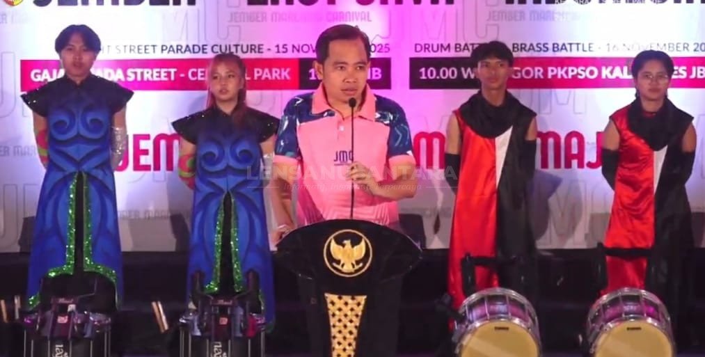 Jember, LENSANUSANTARA.CO.ID – Kabupaten Jember kembali menjadi pusat perhatian nasional dan internasional setelah resmi menjadi tuan rumah Kejuaraan Provinsi (Kejurprov) Drum Band 2025 dan International Street Parade Jember Marching Carnival (JMC). Acara bergengsi ini digelar pada Sabtu (15/11/2025) malam, di Alun-Alun Jember Nusantara.