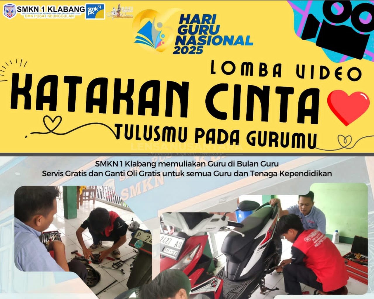 Jelang Hari Guru Nasional, SMKN 1 Klabang Muliakan Guru Gratis Servis Sepeda Motor Dan Gelar Lomba Katakan Cinta Pada Gurumu