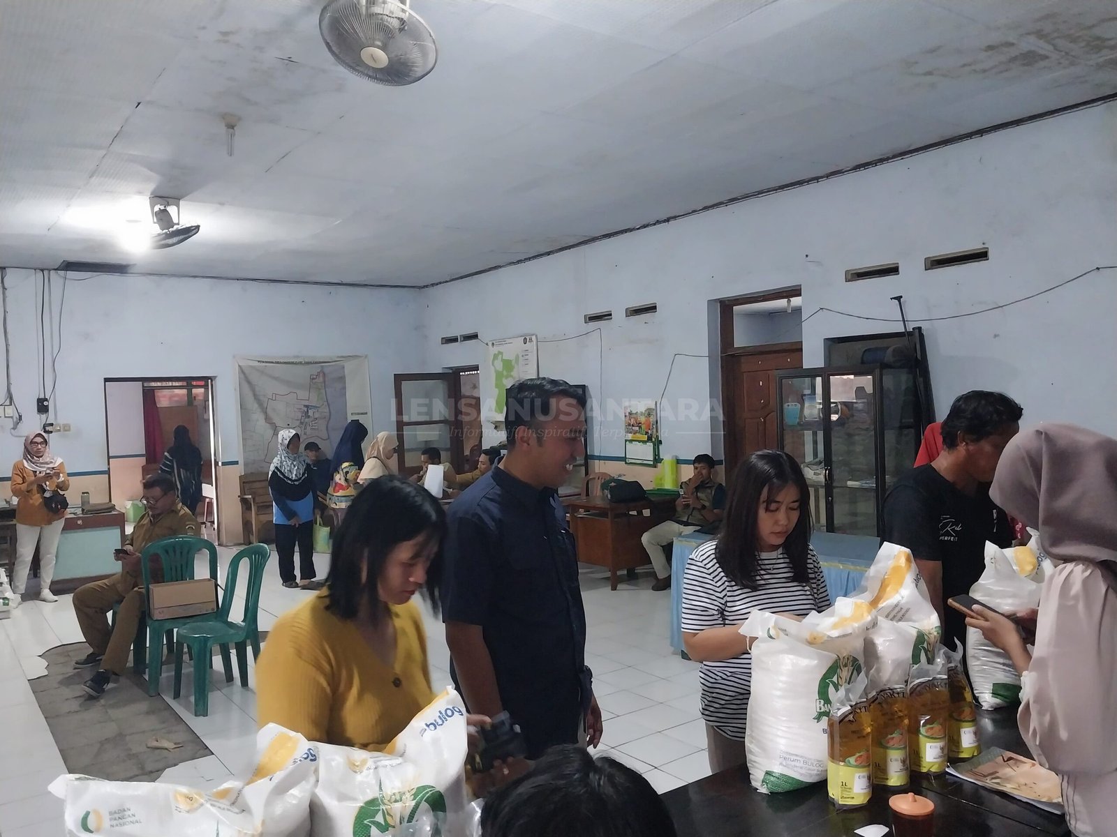 Wakil Ketua Cabang Bulog Kabupaten Madiun, Willy Adi Purba (berbaju biru), saat meninjau proses penyaluran bantuan pangan di Desa Sambirejo, Kecamatan Jiwan, Selasa (18/11/2025).